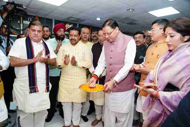 मुख्यमंत्री पुष्कर सिंह धामी भाजपा प्रदेश कार्यालय देहरादून में आयोजित दीपावली मिलन समारोह में हुए शामिल